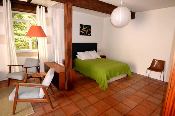 La chambre d’hôtes Colombard est un studio privé avec coin salon et coin repos (lit double 140 cm). La chambre est située au rez-de-chaussée de l’ancienne écurie. Le studio avec une surface de 45 m² est agréable et meublé confortablement, avec des murs d’un blanc éclatant et un mobilier de style rétro. Il y a assez d’espace pour placer un lit bébé pour les enfants jusqu’à 2 ans.